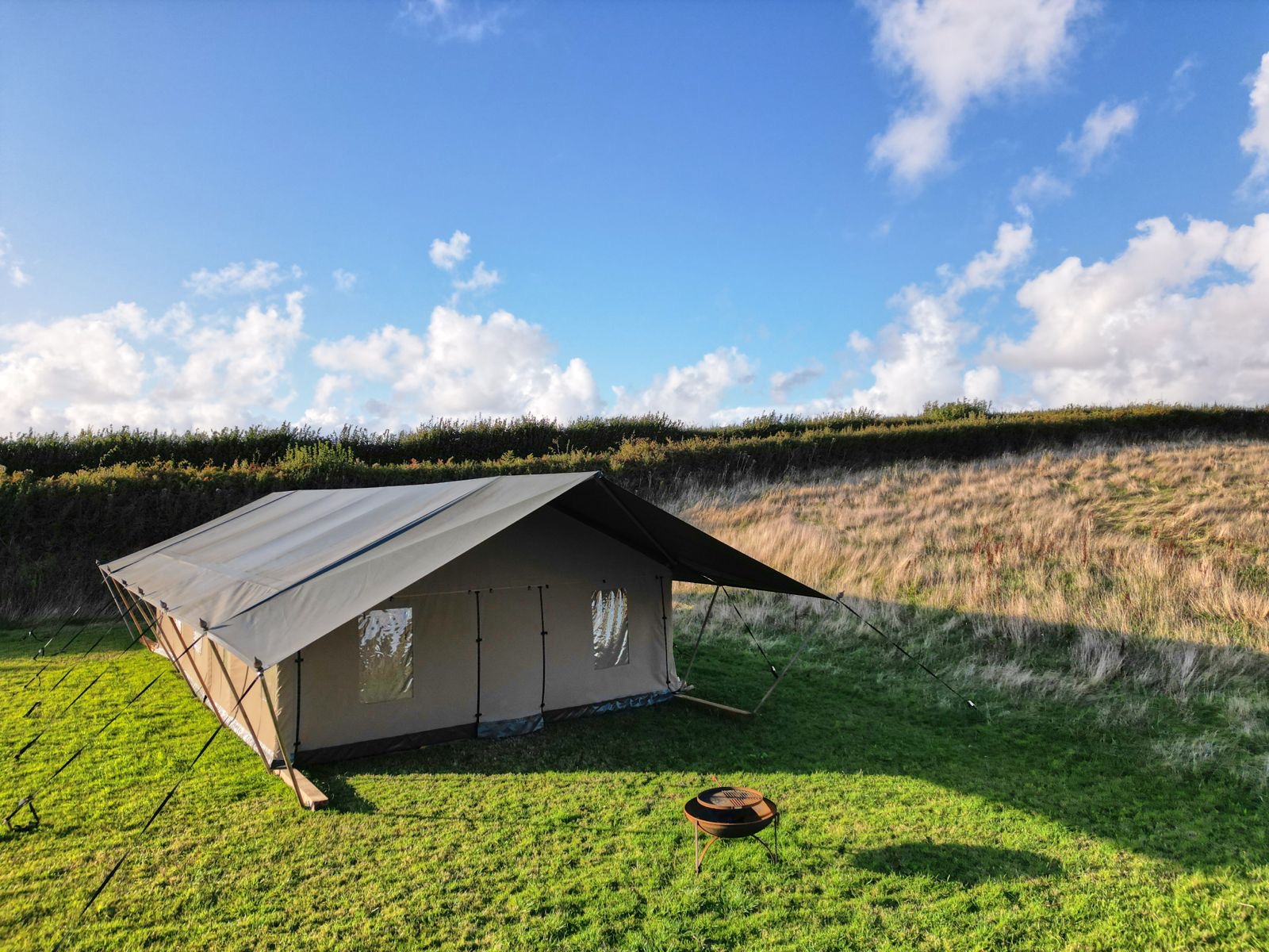 Nestled in the picturesque countryside, Salcombe Farm provides the ideal location for your holiday or short break in the stunning area of Salcombe and its surroundings. We offer three luxury safari tents with three accommodation options to suit your needs. You can have one Safari tent for 6 people, two for 12, or all three for up to 18 guests.